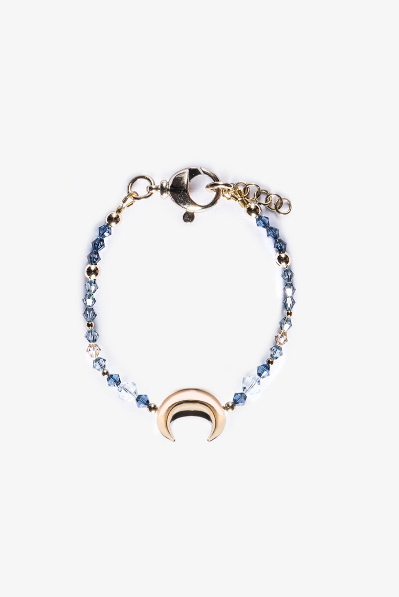 The main tonalty of the bracelet is light blue with sapphire details and it is made with sparkling Swarovski® crystals and brass accessories with gold finishing. it's one size bracelet, there are some rings to adapt the length, the maximum circumference is 21 cm